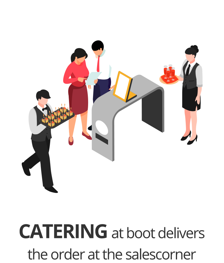 The famous online food ordering app Rakedi has been adapted for use at trade shows and events where visitors can get a drink and/or snack. Exhibitor salesforce can now spend more time with the visitor because the catering service of the fair or event receives orders via the salesforce smartphone or iPad.